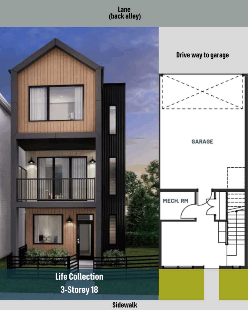 Found in our Metro Collection Townhomes and our Life Collection 3-Storey Single Family Homes. These homes offer direct access from the rear lane into the garage, ideal for urban living and convenience.