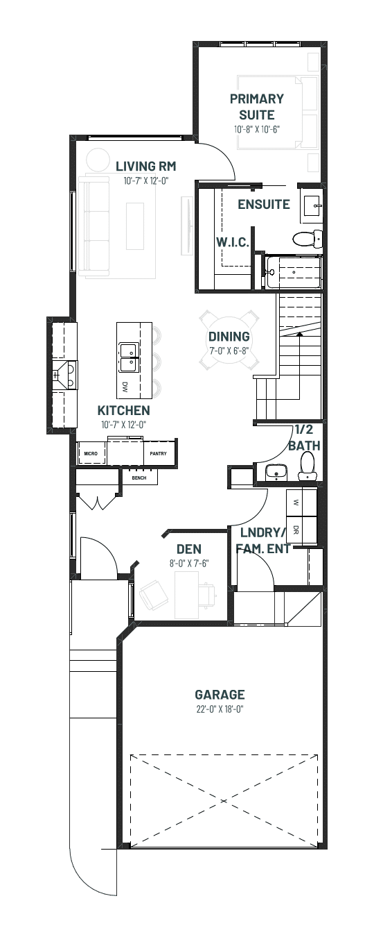 Bungalow Duplex 22 brings the elevated comfort of the Cantiro Bungalow Collection into a duplex home thoughtfully designed to support long term living and mobility. The spacious main floor features soaring ceilings and wide doorways throughout. Homeowners can also choose to develop the basement, adding even more flexible space for guests, hobbies, or extended family. Bungalow Duplex 22 offers the perfect blend of style, function, and adaptability for every stage of life.