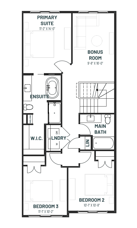 Upstairs, the primary suite includes an ensuite and walk-in closet, along with two additional bedrooms, a full bathroom, convenient laundry room, and a bonus room ideal for family time or a quiet retreat.