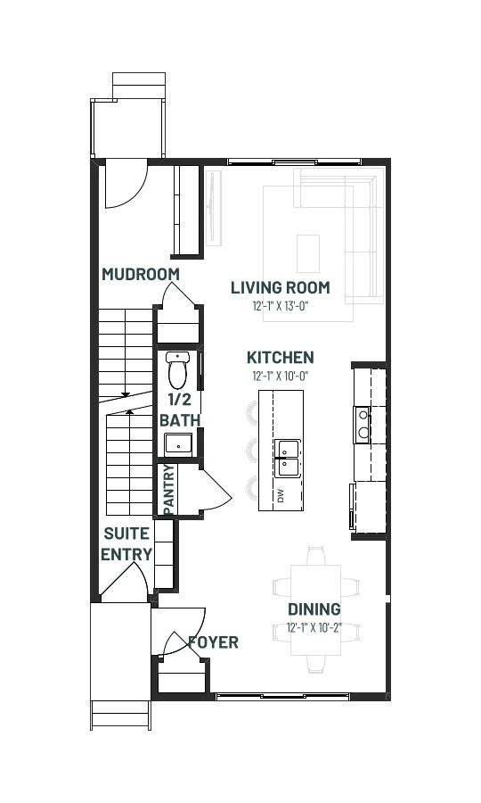 Main Floor - Secondary Suite Entry Option - 694 Sq Ft.